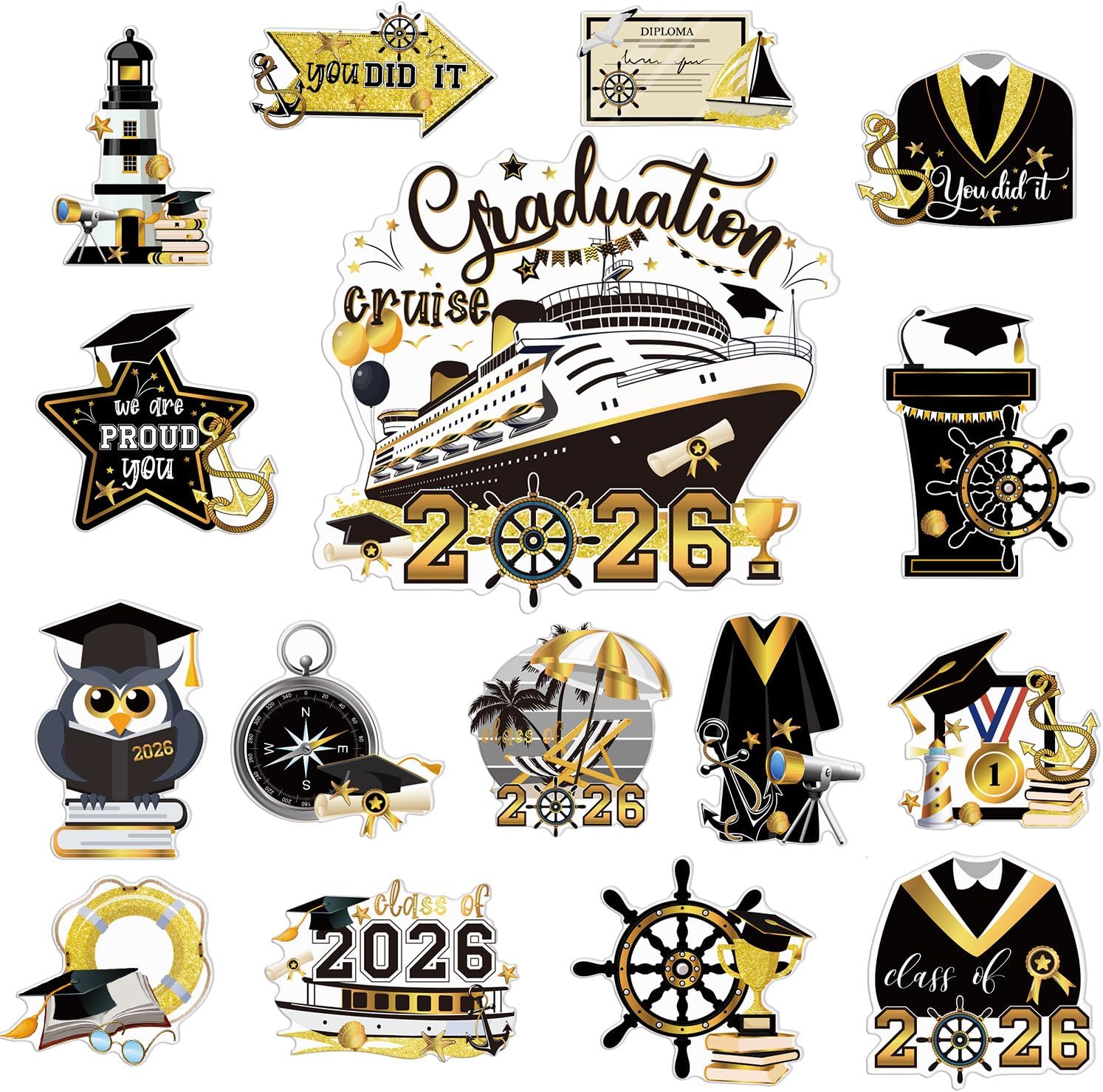 Celebrate your graduate’s big achievement in style with these eye-catching Graduation Cruise Door Magnets – Class of 2026 Edition! This 16-piece set is the perfect way to personalize your cruise cabin door and make your celebration stand out at sea.